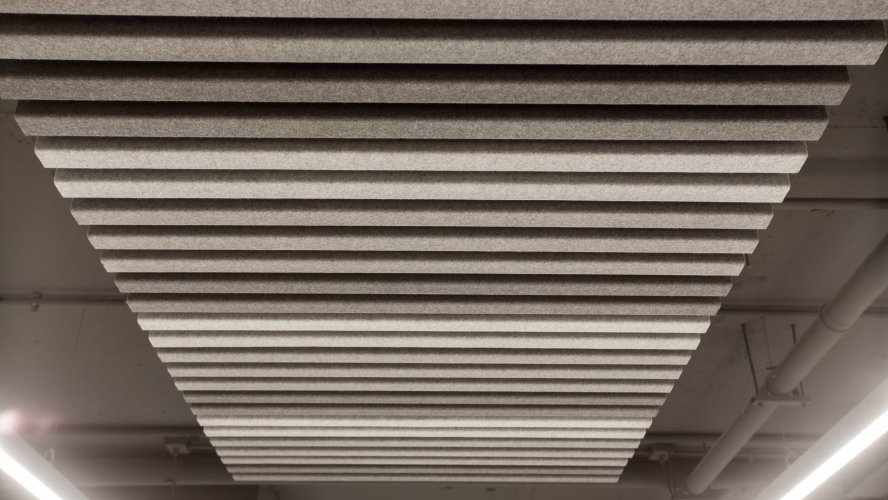 Sistema modular de forro de feltro, que transforma cada projeto em uma possibilidade visual e acústica criativa
