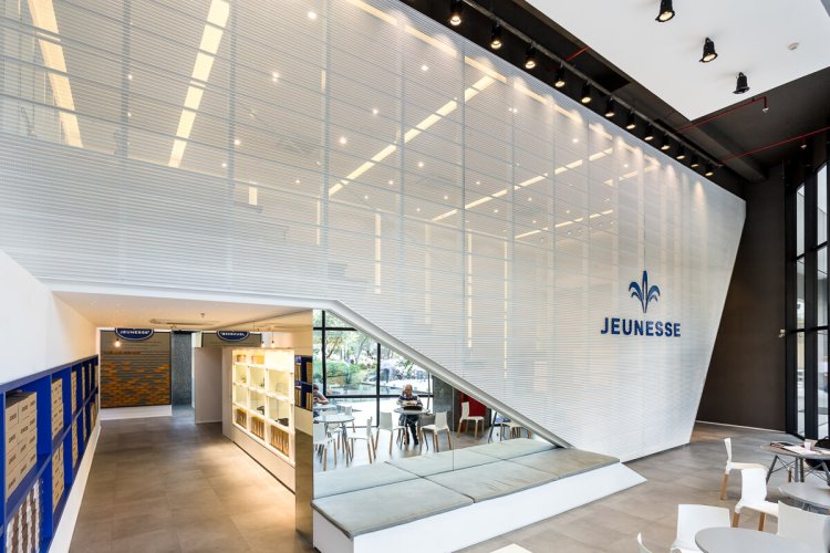 O produto Miniwave Hunter Douglas apresenta geometria de linhas onduladas, sendo possível aplicá-lo como revestimento interno ou externo. O revestimento pode ser instalado horizontalmente ou verticalmente e ainda ser liso ou perfurado. Quando perfurado e utilizado externamente, o produto apresenta a função de brise, sendo possível manter o contato do ambiente interior com o exterior, uma vez que o dimensionamento e distribuição dos furos permitem uma excelente visibilidade através dos painéis. Quando aplicado internamente, junto a manta absorvente, apresenta propriedades acústicas