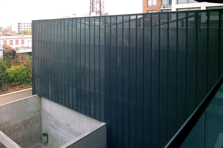 O revestimento Multipainel Wave Hunter Douglas consiste em lâminas onduladas com as extremidades planas fixadas em porta-painéis, sendo passível de instalação no sentido horizontal ou vertical. O sistema apresenta dois tipos de painéis, podendo optar por juntas secas ou com um canal rebaixado aparente, criando frisos entre os módulos. Por ser um produto linear e sem pontos de fixação aparentes, proporciona o aspecto de um revestimento regular e contínuo.