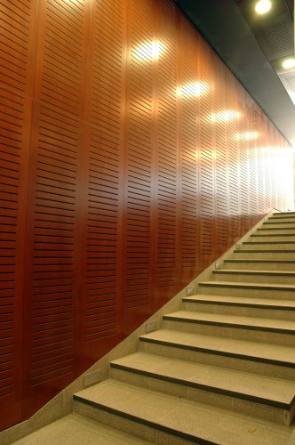 O Revestimento Natura Hunter Douglas é um produto fabricado de forma industrializada, composto por bandejas em madeira aglomerada revestida em ambas as faces com uma chapa de madeira natural, razão pela qual os tons e os veios são variáveis. O produto apresenta 16 mm de espessura, sendo a chapa de acabamento disponível em diversos padrões de madeira: Goiabão Escuro, Imbuia Castanho, Nogueira Americana, Tauari, Jequitibá, Louro Vermelho e Curupixá. Em uma mesma aplicação, pode-se combinar diferentes comprimentos e acabamentos. O painel pode ser liso, perfurado ou ranhurado, sendo nesses dois últimos casos, quando agregado a um material absorvente acústico, um produto com excelente propriedade para controle da reverberação do som nos ambientes.